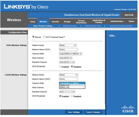 Đôi khi bạn không thể thoải mái lựa chọn dải tần 5GHz hoặc chọn một kênh “cô đơn”. Trong những trường hợp như vậy, bạn nên hạn chế bộ định tuyến của bạn gửi tín hiệu ở khoảng thời gian 20MHz. Điều này có thể làm giảm thông lượng tổng thể một chút, nhưng nó sẽ cung cấp cho bạn tín hiệu mạnh hơn và ít bỏ qua hơn: