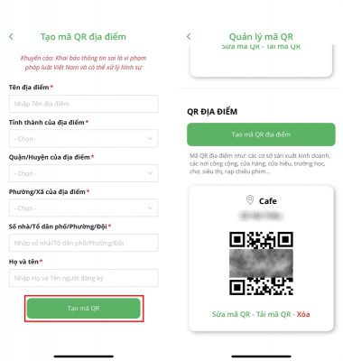 Bước 3. Bạn điền đầy đủ các thông tin về địa điểm của mình. Sau đó chọn Tạo mã QR. Hoàn tất, bạn sẽ có mã QR địa điểm của mình, nhấn Tải mã QR để sử dụng.