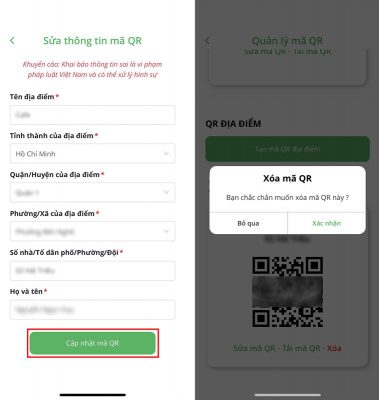 Bước 4. Bạn chọn Sửa mã QR để chỉnh sửa lại thông tin hoặc Xóa đi mã QR này.