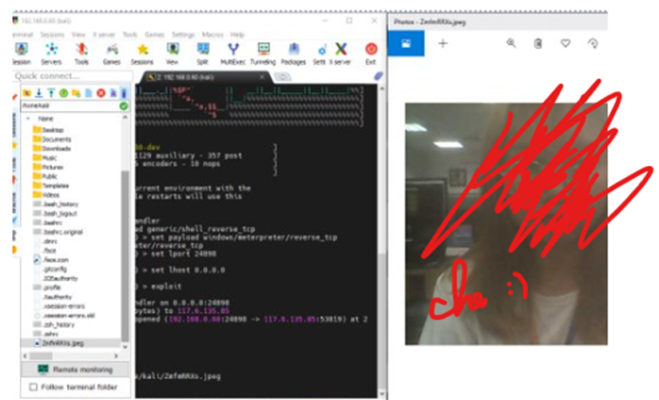 Lấy được các tài liệu trong thư mục của nạn nhân. Ngoài ra còn theo dõi webcam, tải và thực thi các câu lệnh độc hại. Tóm lại khi mở được phiên kết nối đến máy nạn nhân kẻ tấn công có thể toàn quyền kiểm soát máy nạn nhân.