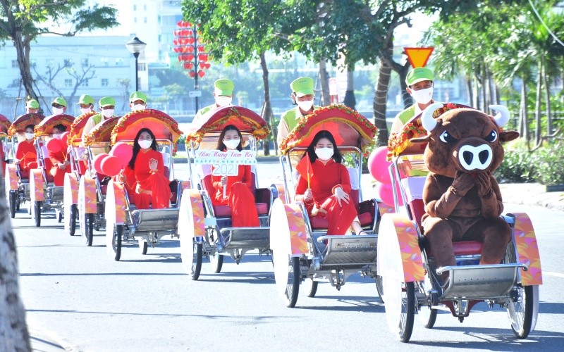 Đà Nẵng diễu hành xích lô khởi động Lễ hội chào năm mới 2021. 40 chiếc xích lô du lịch được trang trí giản đơn theo hướng thân thiện với môi trường đã cùng diễu hành trên nhiều tuyến phố trung tâm Đà Nẵng, mở đầu cho chuỗi sự kiện chào mừng Lễ hội Đà